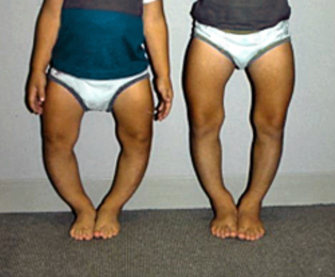Часто сочетается с внутренней торсией голени (поворот голени внутрь), что визуально усиливает варусную деформацию