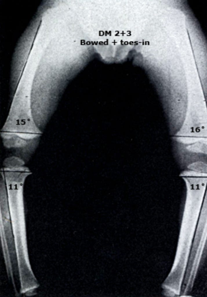 Большеберцовый МД угол >16°: предполагает болезнь Блаунта