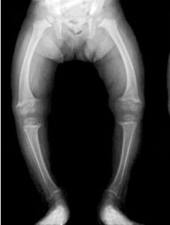Локализация искривления: поражение как бедренных, так и большеберцовых костей